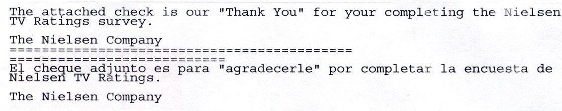 But if Nielsen (or anybody else) sends me another survey with a pile of money, I’ll fill that one out, too!