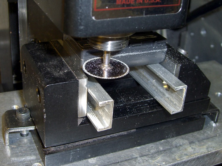No coolant, 1000 rpm, 200 mm/min, the saw is 22 mm diameter. Much slower than you’d use if you were in production, but I’m not.