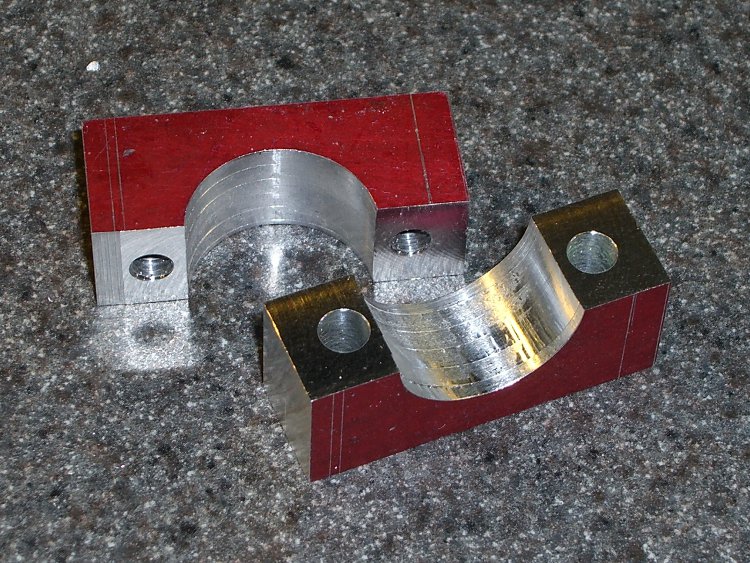 Machining the clamp is straightforward: bandsaw a block of about the right size, square it up in the mill, helix-mill the clamp hole …