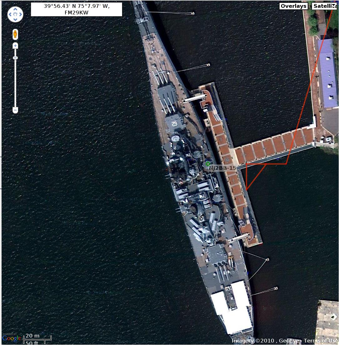 NJ2BB-15 is the APRS digipeater aboard BB62 with an antenna high in the superstructure. While I didn’t have any trouble with RF reception, packet collisions pose a problem in a dense urban environment. For what it’s worth, essentially everything in the superstructure is an antenna; the NJ2BB ham shack is a wonder to behold.