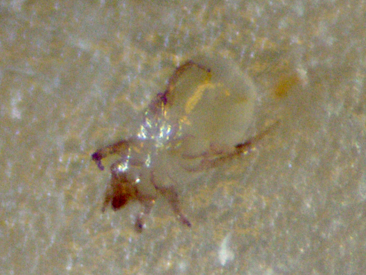 Dust mites, at least for their first few instars, are transparent little bags of bug stuff. The first instar may have six legs, just like a first instar bed bug, but successive instars have eight.