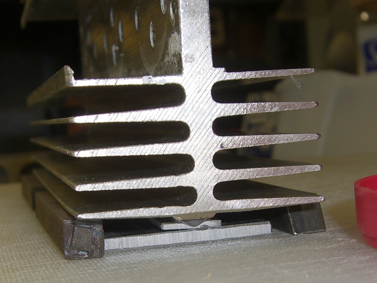 I decided to replace the sawed-off flanges on that salvaged heatsink to make all three use the same mounting arrangement, whatever that might turn out to be.