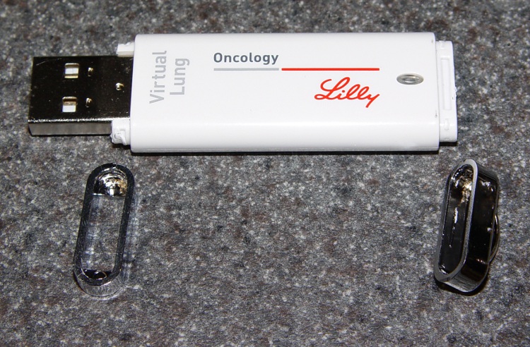 Anyhow, I removed the fancy end caps from the donor stick, which looks to be swag from a medical conference:
