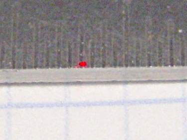 Getting a good photograph of the spot size poses some problems, but here goes. This is the original, un-attenuated spot on a scale with 0.5 mm divisions: in round numbers, it’s half a millimeter across.