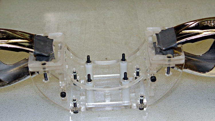 Using superglue, or ideally acrylic cement, you’ll want to attach the spacer feet to the bottom of the supports.