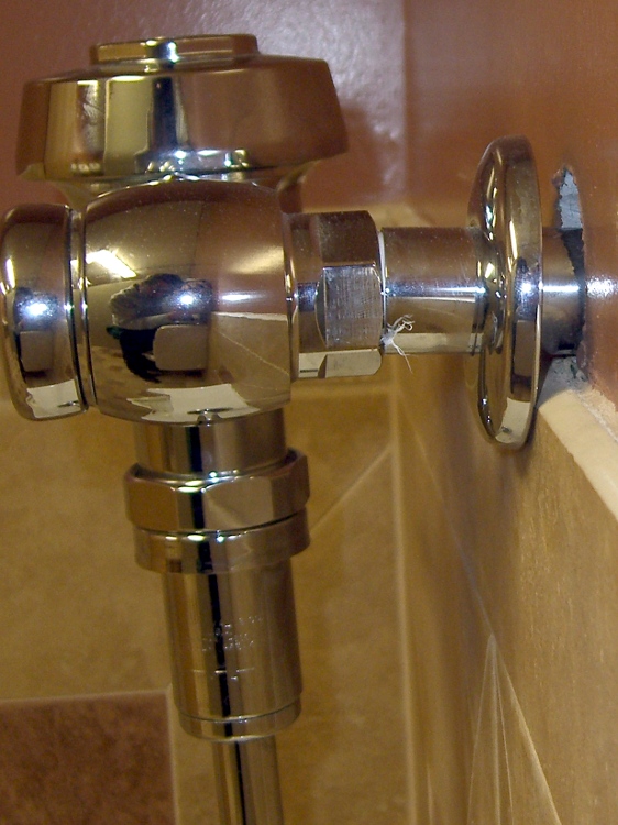 This from a restroom near the new high school auditorium, rebuilt at vast expense over the course of several years. You’d think for all the big bucks, somebody would remember that trim plates require a flat surface.