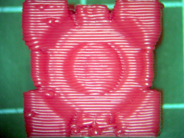 The odd shadows on either side of the central bump become more obvious at an oblique angle. At 25 mm/s: