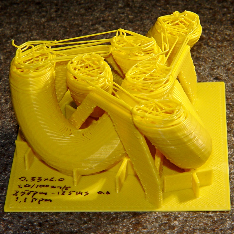 As the scrawled notation says: printed at 50 mm/s with 100 mm/s moves. The only cleanup: remove the scaffolding and slice off the Reversal zittage.