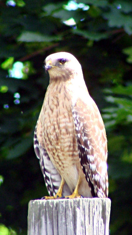 Sibley shows the Eastern Red-shouldered Hawk with a much more orange chest and distinct shoulder patterns. It’s hard to tell from this crappy picture, but this one was more brown with less patterning.