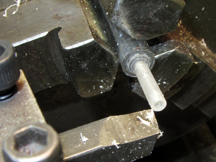 The OpenSCAD code will print out a quartet of plugs (pick the best two), but having thought of that too late, I turned a pair from a random acrylic rod: