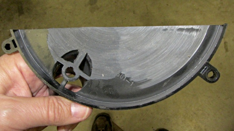 The setscrew gouged the shaft enough to prevent the disk from sliding off the shaft, which was probably a Good Thing, but that also meant I had to jam a big flat-blade screwdriver inside the guts of the dust guard and twist to pry the disk off: