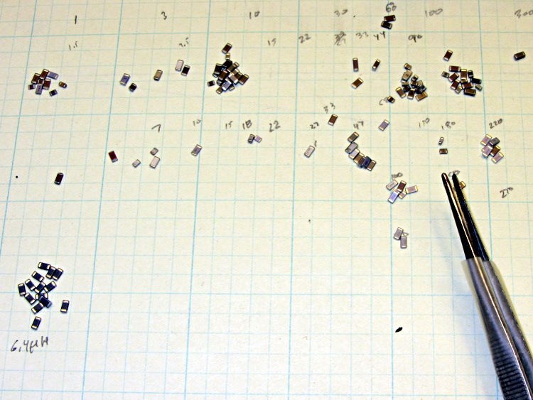 But even this version works wonderfully well, as I sorted out a few hundred random SMD caps in two half-hour sessions that I’d been putting off for far too long. This is the last batch; I’ve learned the hard way that it pays to transfer batches of chips to their storage bins long before I think I should: