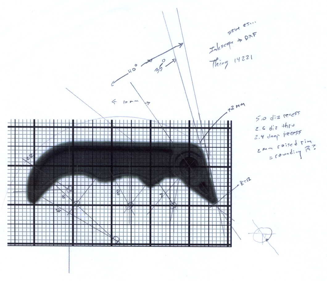 The original doodles, which I started by scanning an unbroken handle and overlaying a grid, then scaling the grid so the end-to-end measurement worked out to the proper number of millimeters: