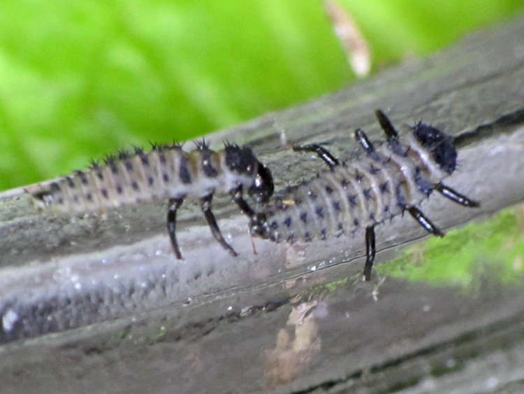 Eventually they turn into Ladybugs who relentlessly stalk larger aphids on garden plants: