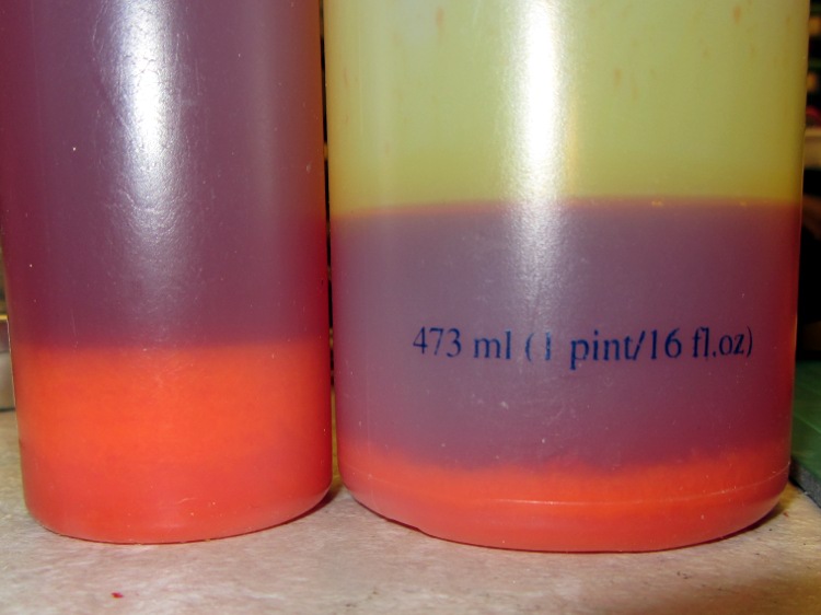 Something has gone badly wrong with the yellow bulk ink that I’m using in the Canon S630. Over the winter a precipitate formed in the bottles: