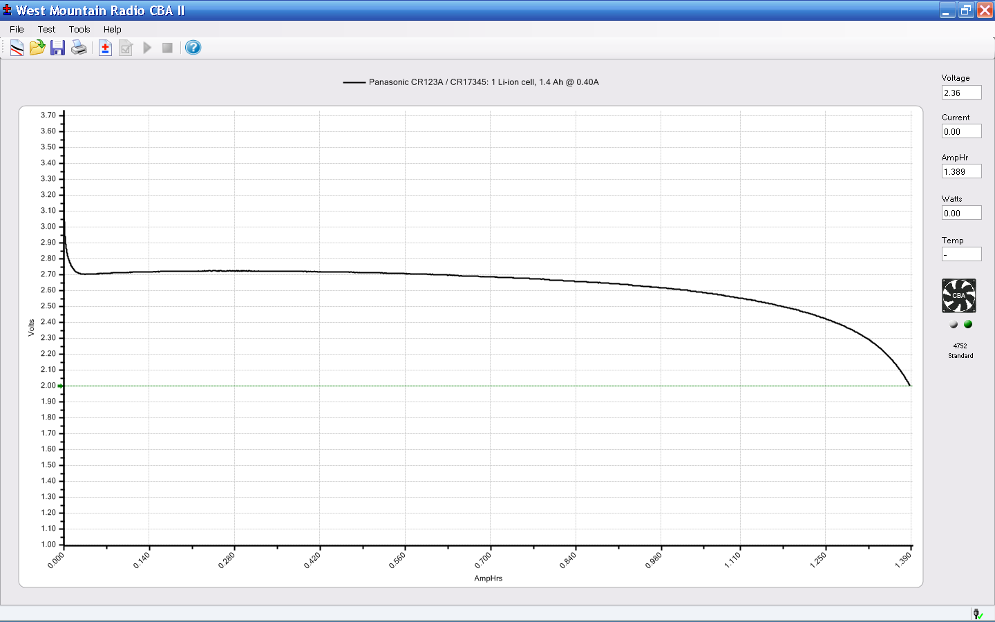 Picked up 25 Panasonic CR123A (more properly, CR17345) cells from the usual eBay supplier and put one to the test: