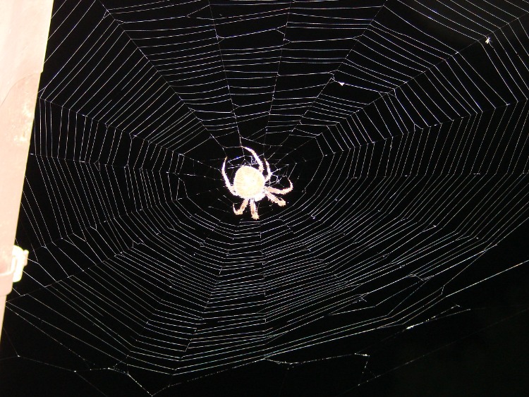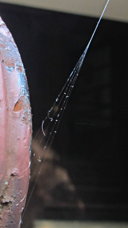 Although they’re the stuff of nightmares, they’re pretty much harmless and out of the way, high up around the gutters. Remember, we did dislodge that anchor strand on the railing; we’re not that lax! They capture bugs, we don’t hassle them, and we get along with very little friction.