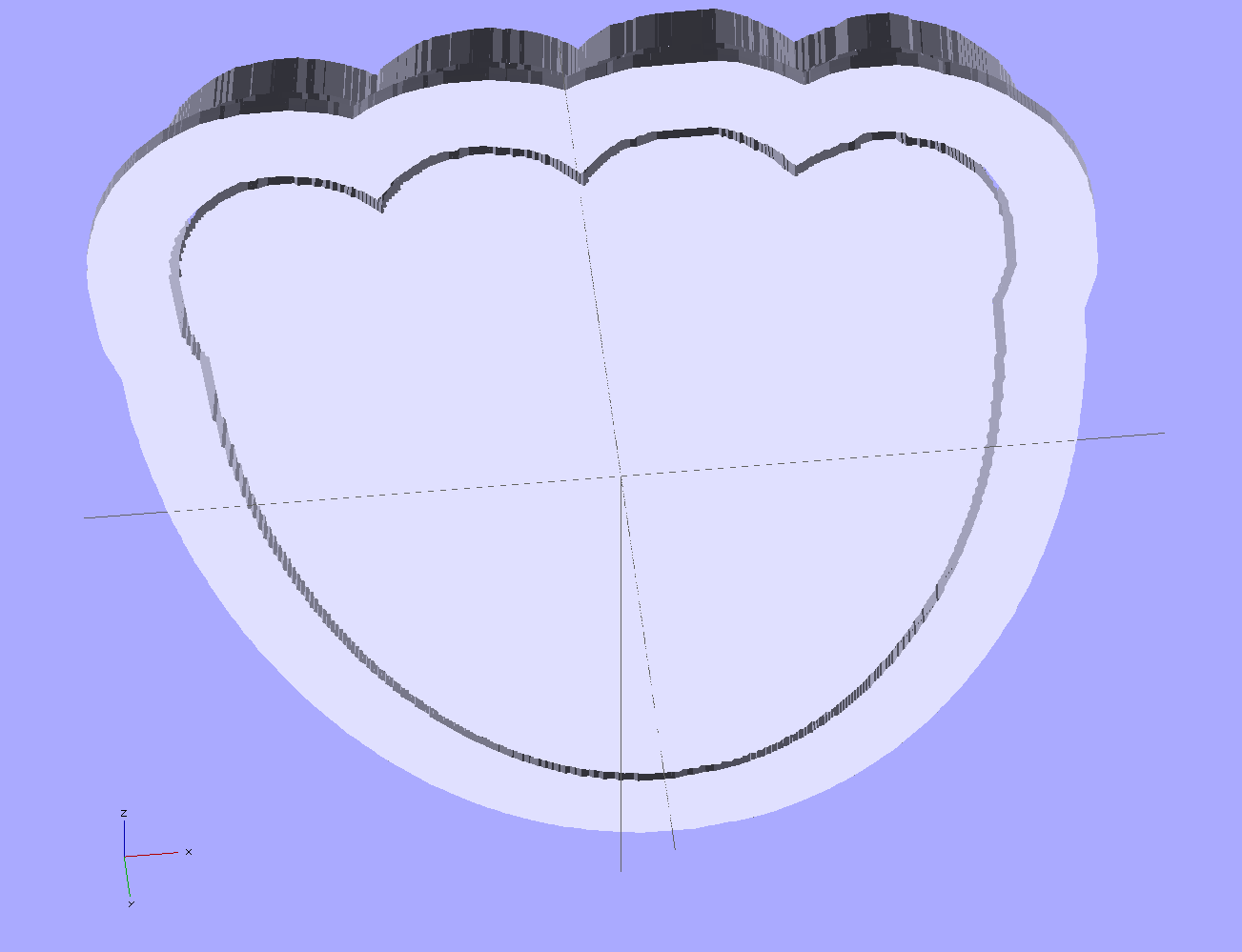 It’s possible to produce the cutter in one shot, starting from the DAT files, but having the two STL files makes it (barely) feasible to experiment interactively within the OpenSCAD GUI.