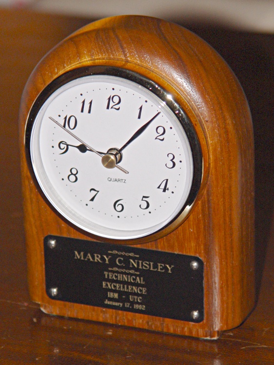 Long ago, in a universe far away, IBM gave Mary a desk clock as part of that Technical Excellence Award: