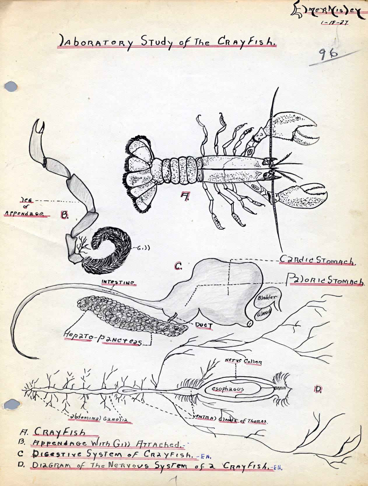 The stomach and nervous system seem sufficiently stylized that they’re not drawn from a specimen; I’m pretty sure a real crayfish doesn’t come apart quite so neatly.