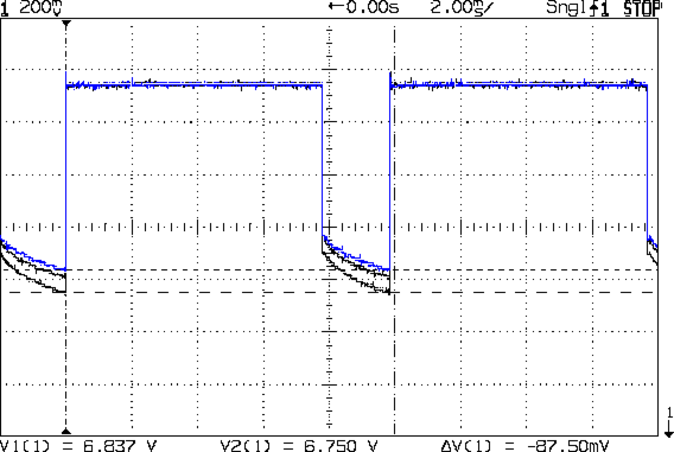 This scope shot shows the total forward drop across the three LED strings, with V=0 offset way down below the bottom of the display: