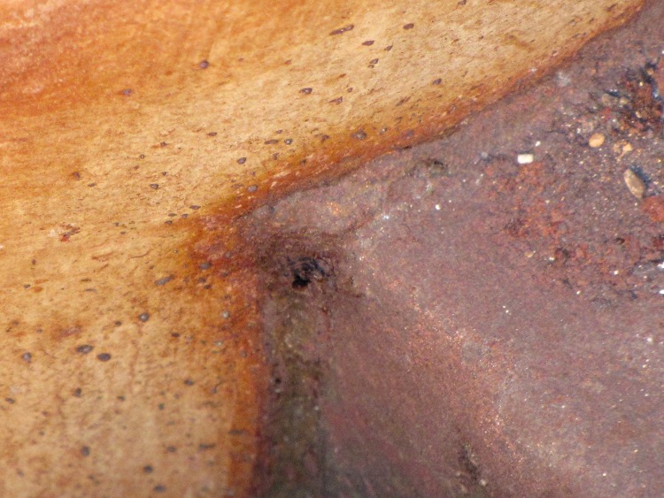 Which small spot on this hot-air furnace heat exchanger isn’t like all the other small spots?