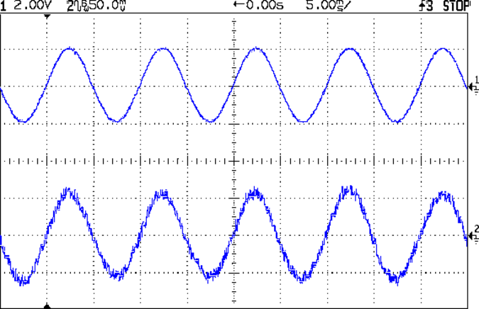 Applying the oscilloscope’s low pass filter cleans it up a bit:
