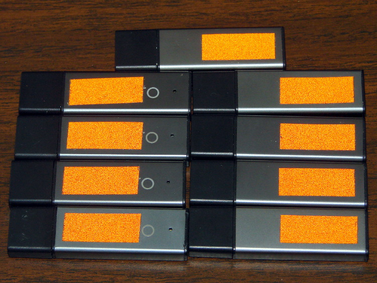 Each side has a snippet of retroreflective orange tape; the tenth drive lives with the Token Windows Laptop. Done!