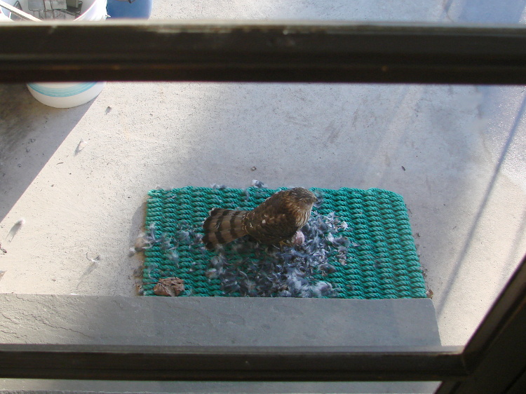 It then flew away with the gibbage in its claws, leaving us a doormat covered with feathers.