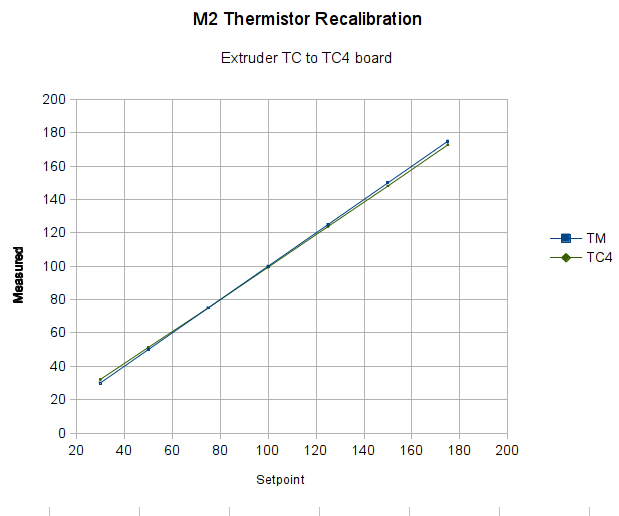 With all that in hand, I connected the thermocouple epoxied to the M2’s nozzle to the TC4 and re-ran the previous test with the modified thermistor table: