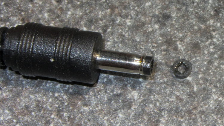 Another coaxial power plug lost its tip inside a lithium ion battery pack used with the APRS + Voice circuitry on our bikes, as I could barely see at the bottom of the socket: