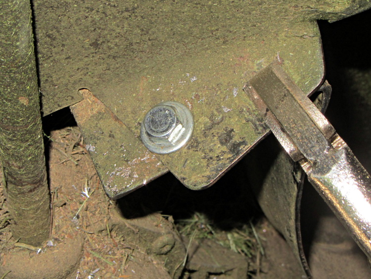 The lawn mower began emitting horrible crashes, which turned out to be coming from a flange at the rear of the mower housing that was formerly spot-welded to the main chassis. Those welds broke and the flange occasionally vibrated into contact with the blade, causing heartache and confusion for both parties.