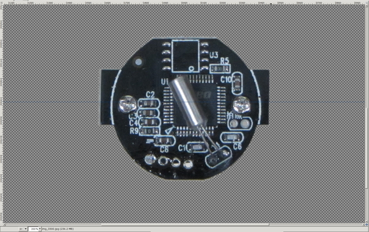 Flip back to normal view, invert the selection (to select the background, not the PCB), and delete the background to isolate the PCB:
