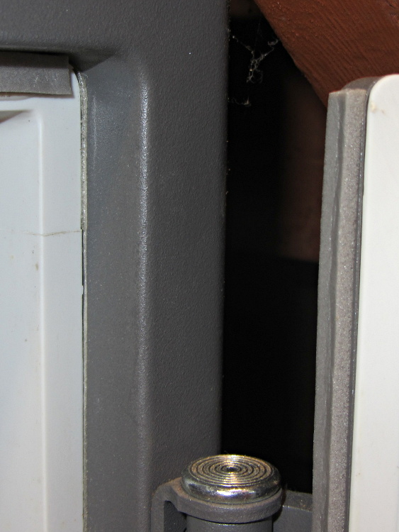 The hinge side of the door has tape between the door liner and the safe wall, because that closes in compression rather than shear: