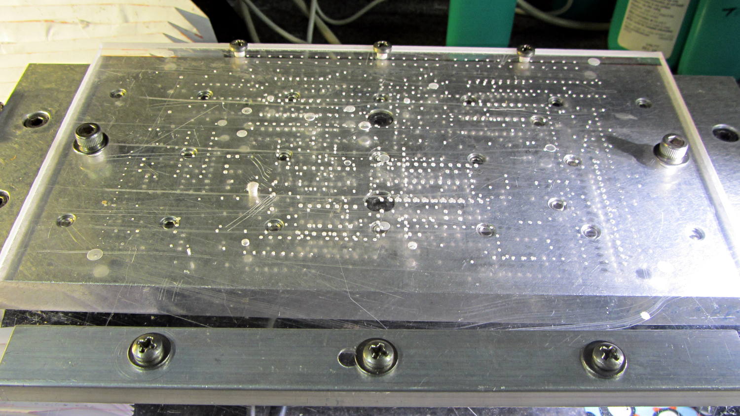 The maximum-size PCB drill platen is getting chewed up, although it’s nowhere near end-of-life: