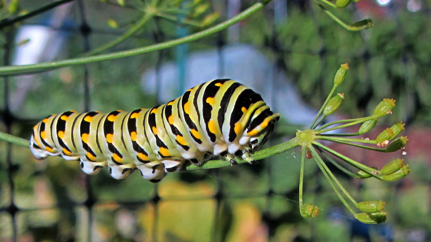 Amazingly, they turn into Black Swallowtail butterflies that sometimes visit the Butterfly Bush outside our living room window. Well, maybe not this one, but certainly some of its relatives.