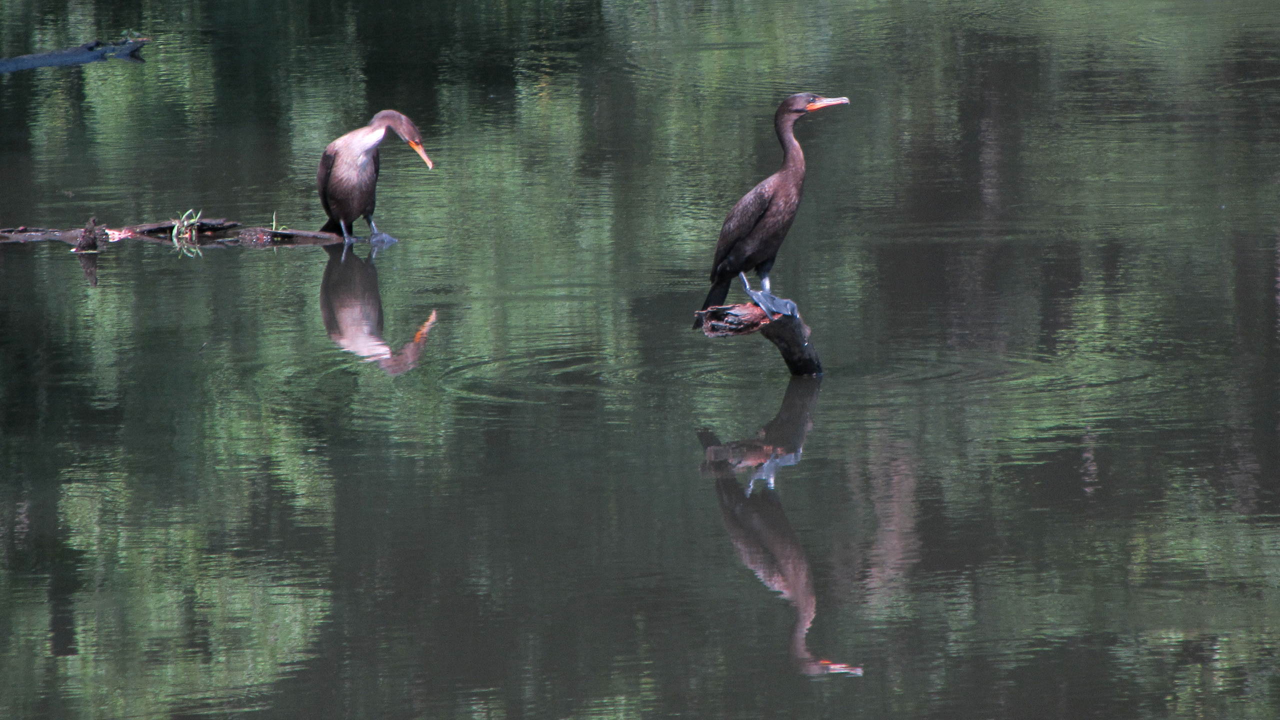 This pair of Double-crested Cormorants took up residence for a few weeks on the pond at Vassar Farm: