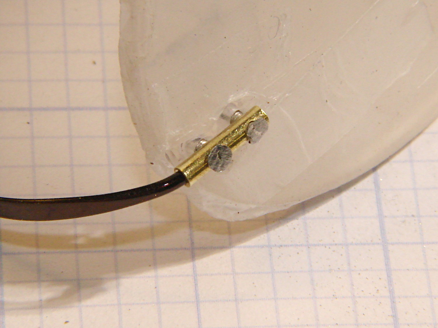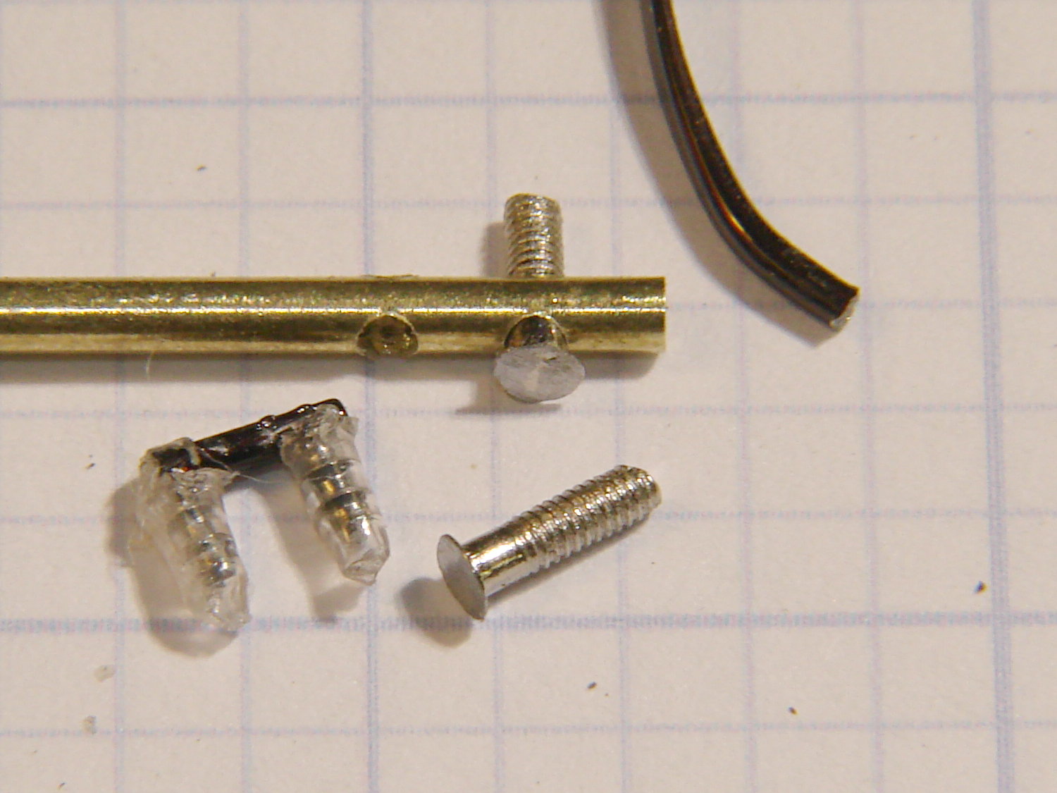 Those dots aren’t quite as round as I’d like, but they’re the better part of 2 mm OD and I’m not complaining much. Note the nice fillet around the temple piece at end of the tubing.