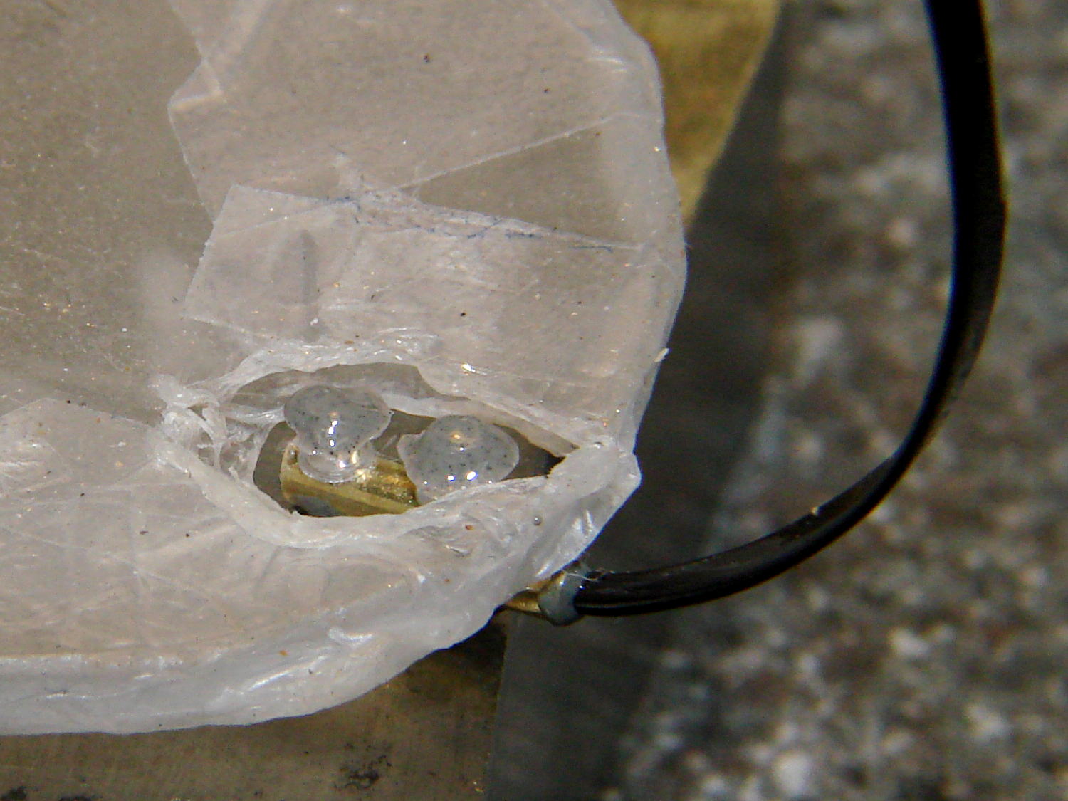 Then file off the rough edges and peel off the Parafilm. It’s a bit on the garish side, but Mary preferred the Steampunk look over a crude paint job, particularly because it’s invisible from her side of the lens: