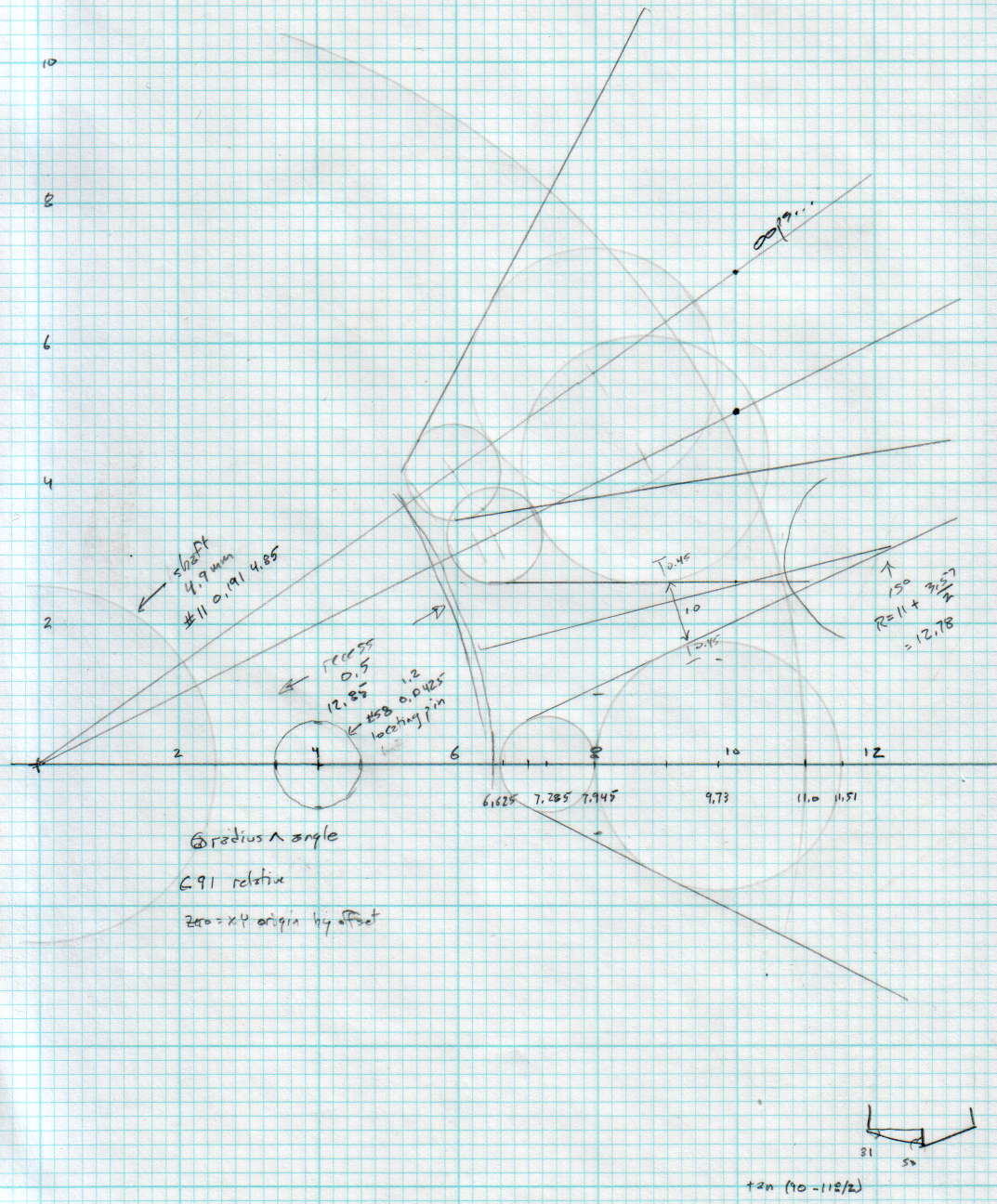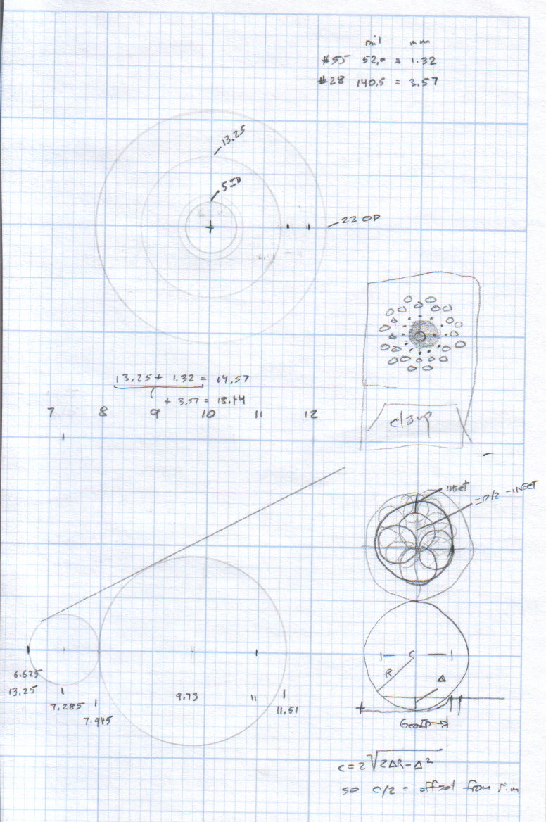 The chord equation at the bottom shows how to calculate the offset for the ball burr, although it turns out there’s no good way to measure the cutting diameter of the burr and it’s not really spherical anyway.