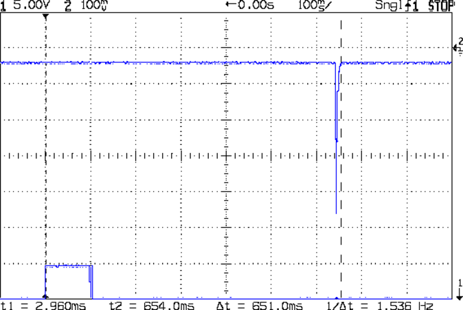 I’d hoped to synchronize an outboard flash with the shutter, but watching a few traces shows that the time from trigger to flash isn’t very consistent; maybe 100 ms jitter, more or less.