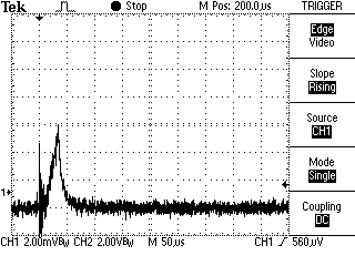 I’d like to measure the flash current, but the Tek Hall probe bears a prominent warning: “CAUTION CORE NOT INSULATED” and I’m loathe to clamp it around a flash tube lead at 300 V with a 4 kV trigger pulse nearby…
