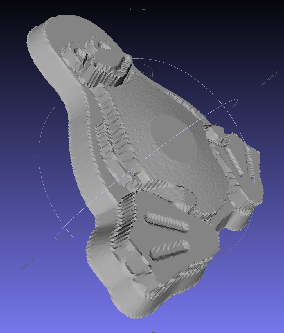 After a few tweaks to the image, now he has a radial gradient on his tummy, his right flipper extends forward, his feet have webs, and his smile looks radiant. The gray levels now extend over a larger range with a bit more separation, with the intent that he’ll now be 5 mm thick: