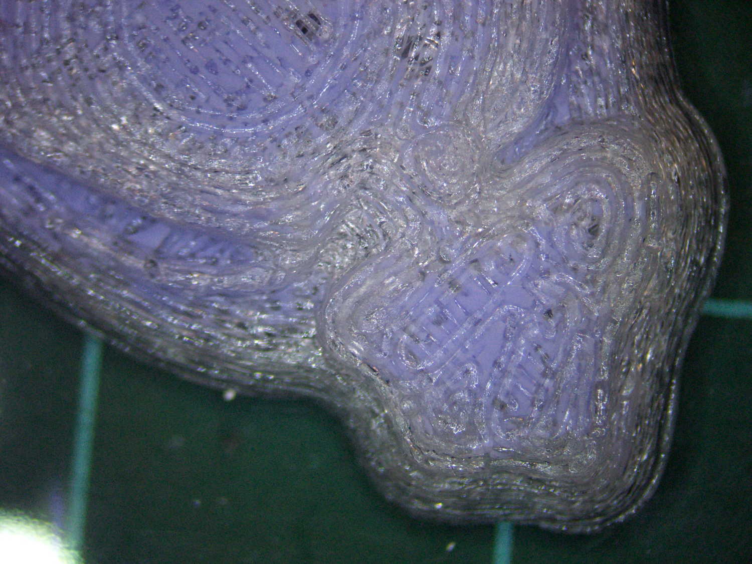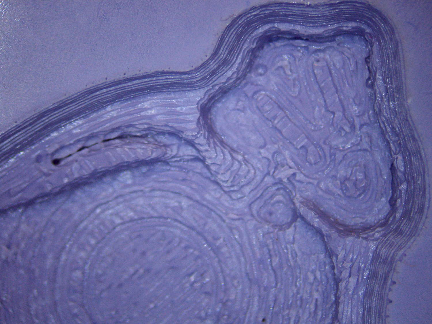 The PLA positive, after removing the silicone negative, showing the silicone below the surface: