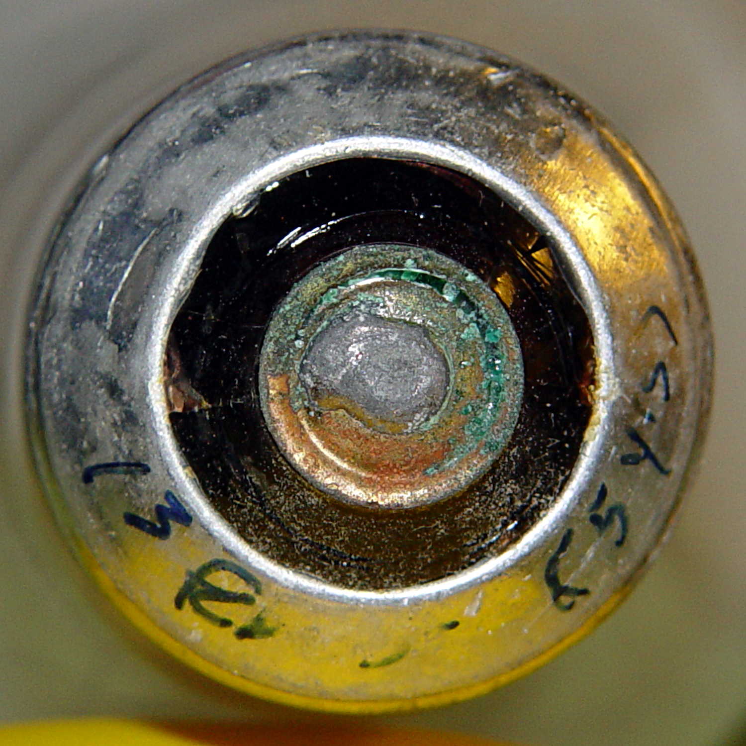 The date is easier to read with the bulb in hand: 13 Feb 05. The (5 yrs) indicates the previous bulb in that socket lasted five years.