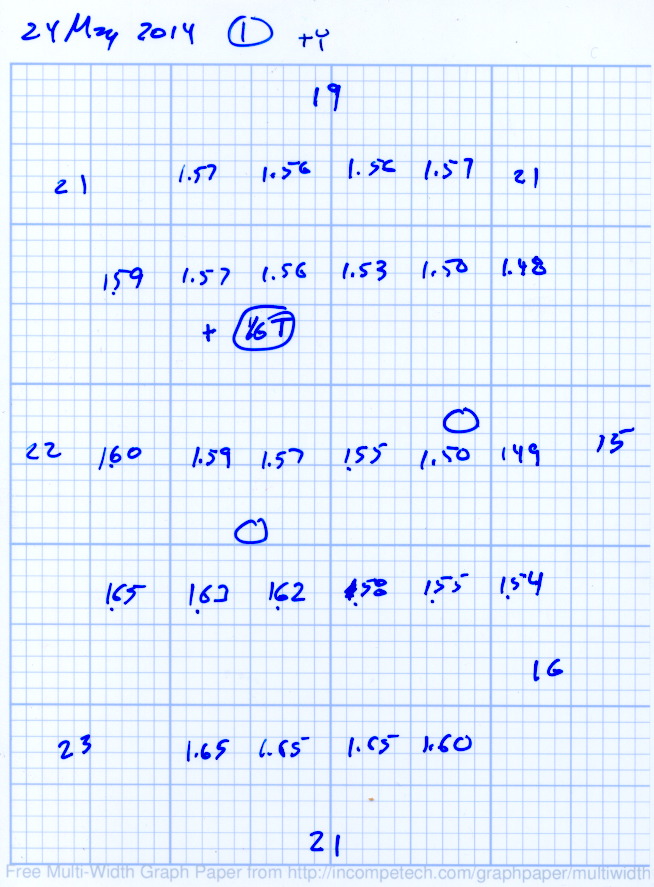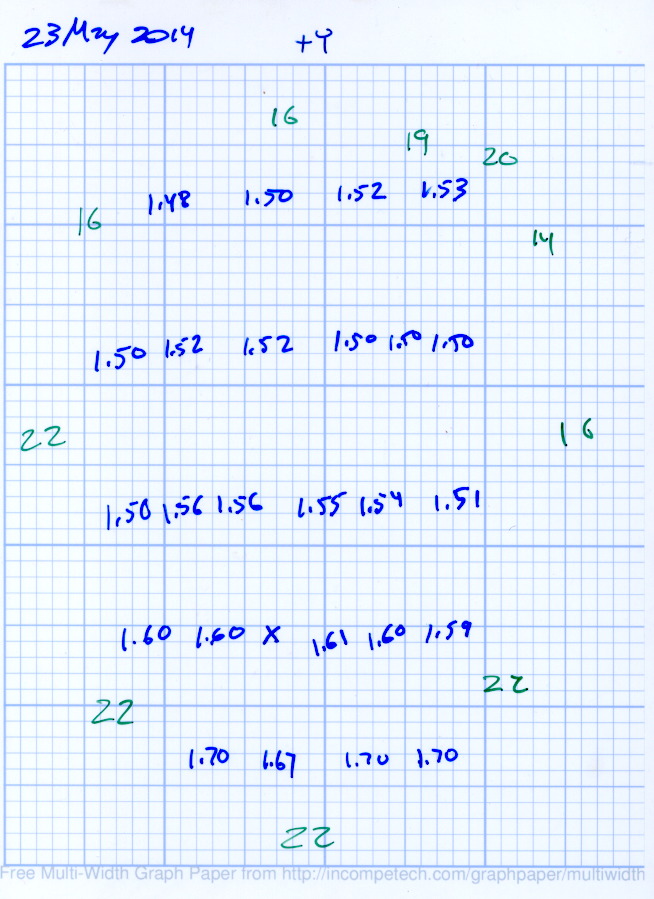 The thicknesses don’t vary quite randomly, but I think further adjustments won’t make much difference: the total range is only 0.12 mm = 1.53 to 1.65 mm. That’s pretty close to the limit of my measurement ability on the plastic pieces.