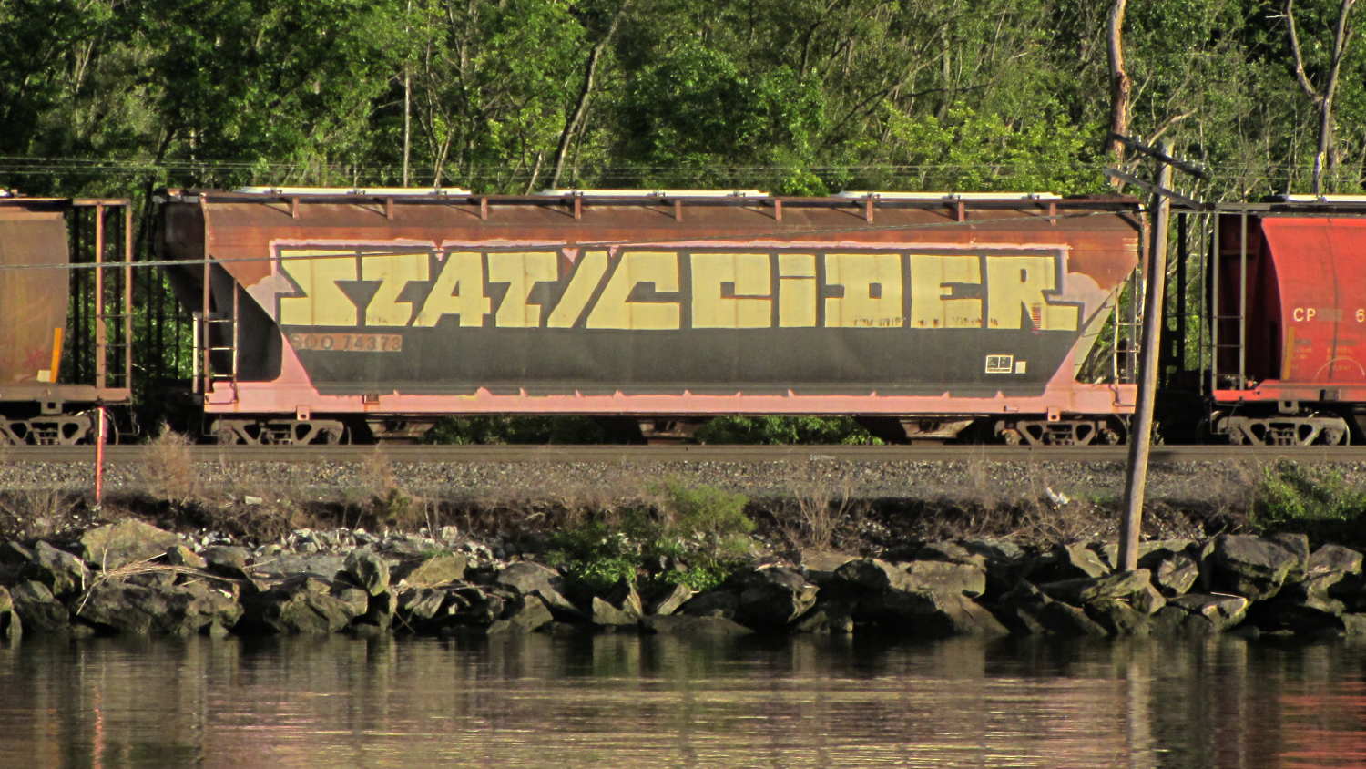 We took a river cruise from Hudson NY on the first day of the Cycling the Hudson Valley ride and, being that type of guy, I spotted this redecorated rail car on the east shore of the Hudson River: