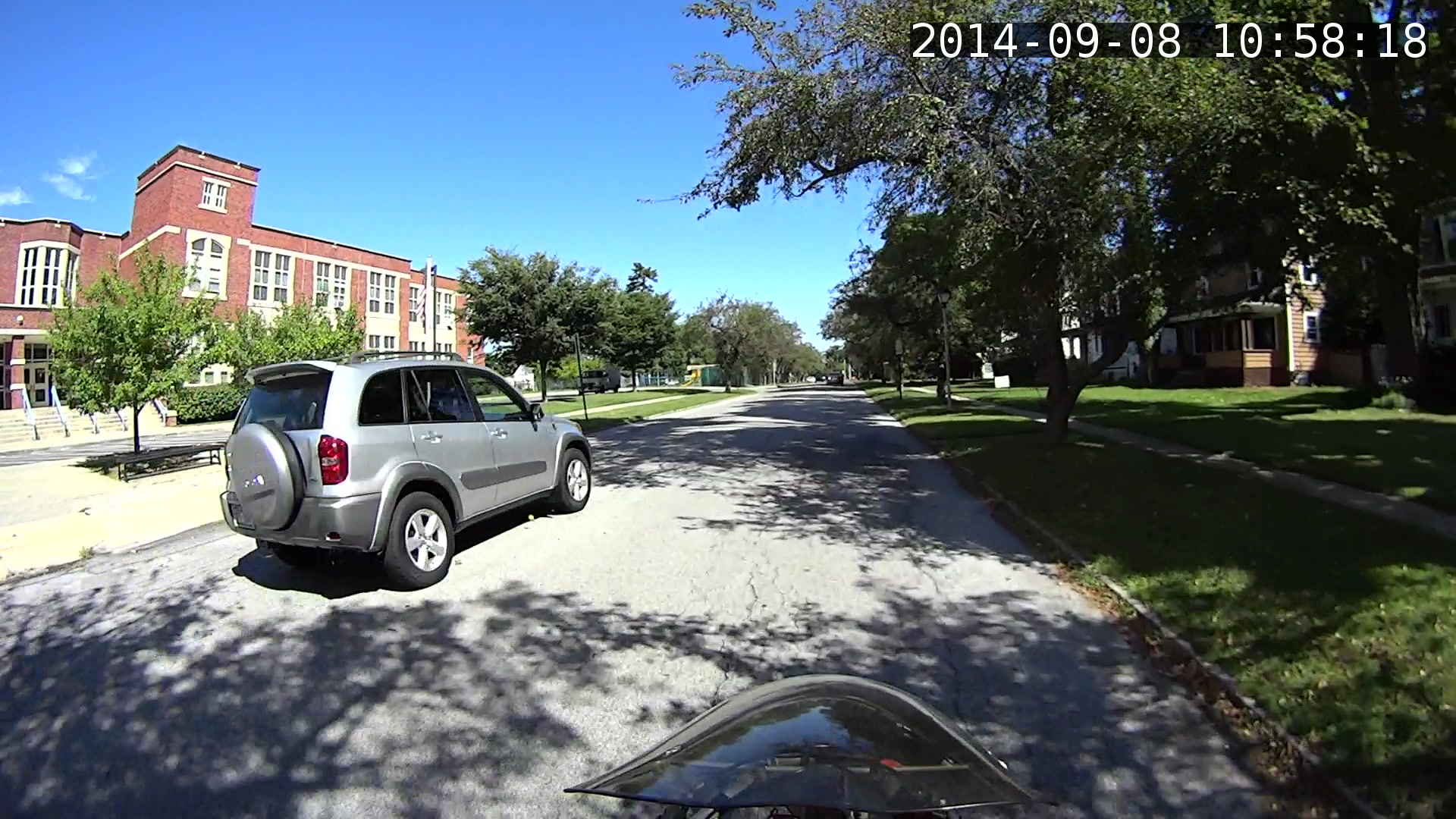 Putting the annotation up in the sky seems better than near the bottom corners, if only because images of the pavement might actually be useful. The timestamp needs the frame number and I think splitting it into two shorter sections (date and time) in the left and right upper corners might work better.