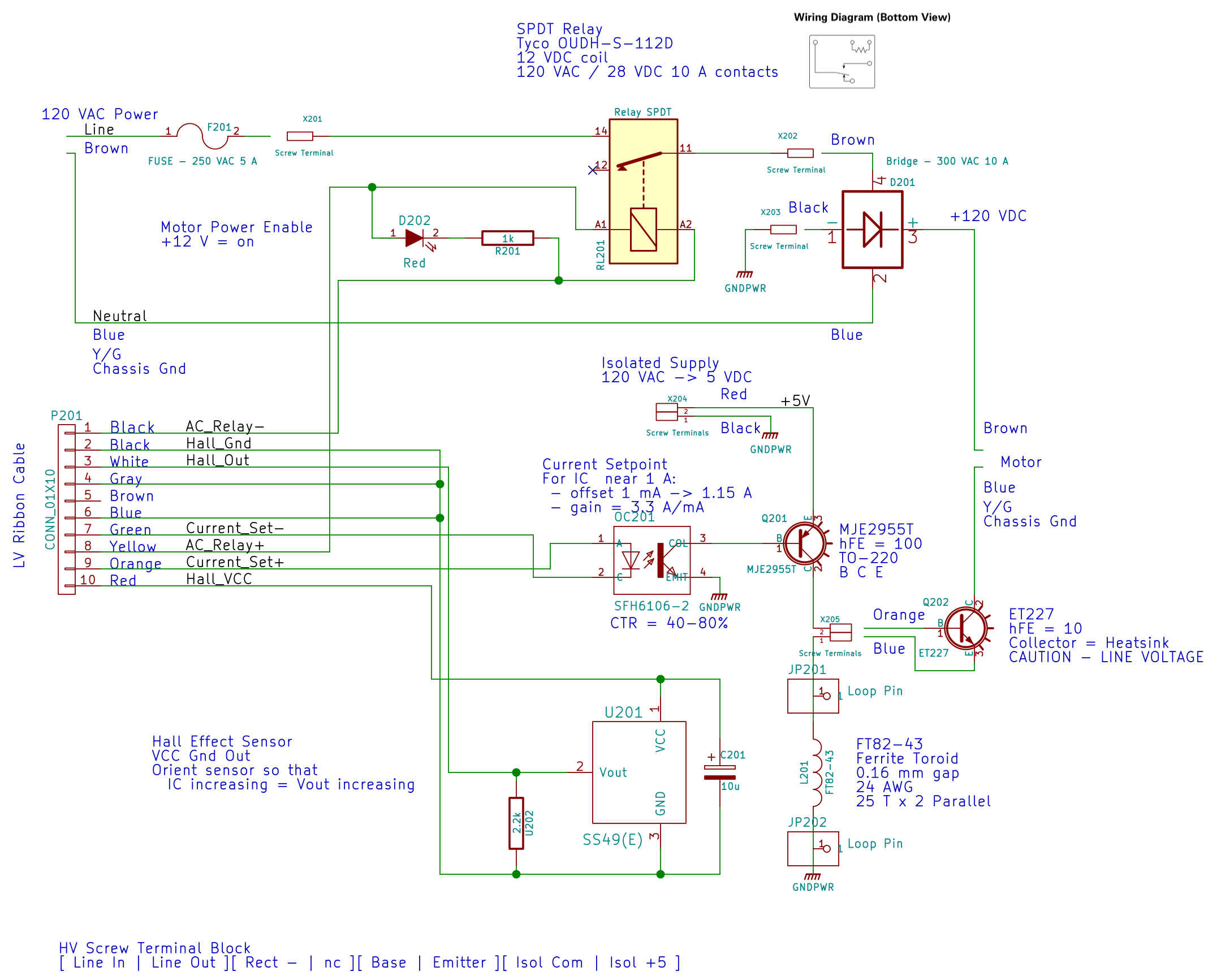 Down at the bottom of the schematic is the slit toroid and knockoff SS49(E) Hall effect sensor that senses the actual motor current.