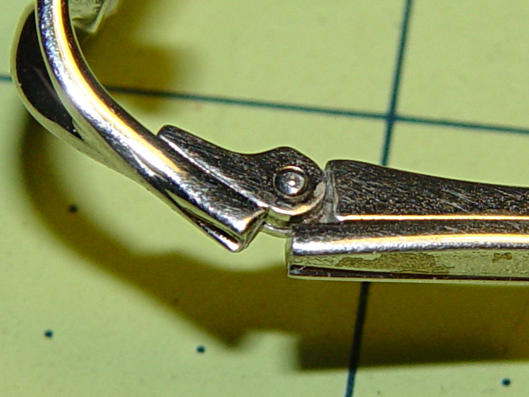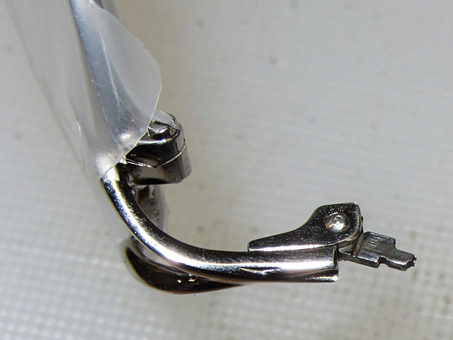 This one has a spring inside the joint that latches the temple on either side of that square inner corner. Obviously, there’s no way to reconnect the broken stub with the spring retracted inside the brazed temple box, so: